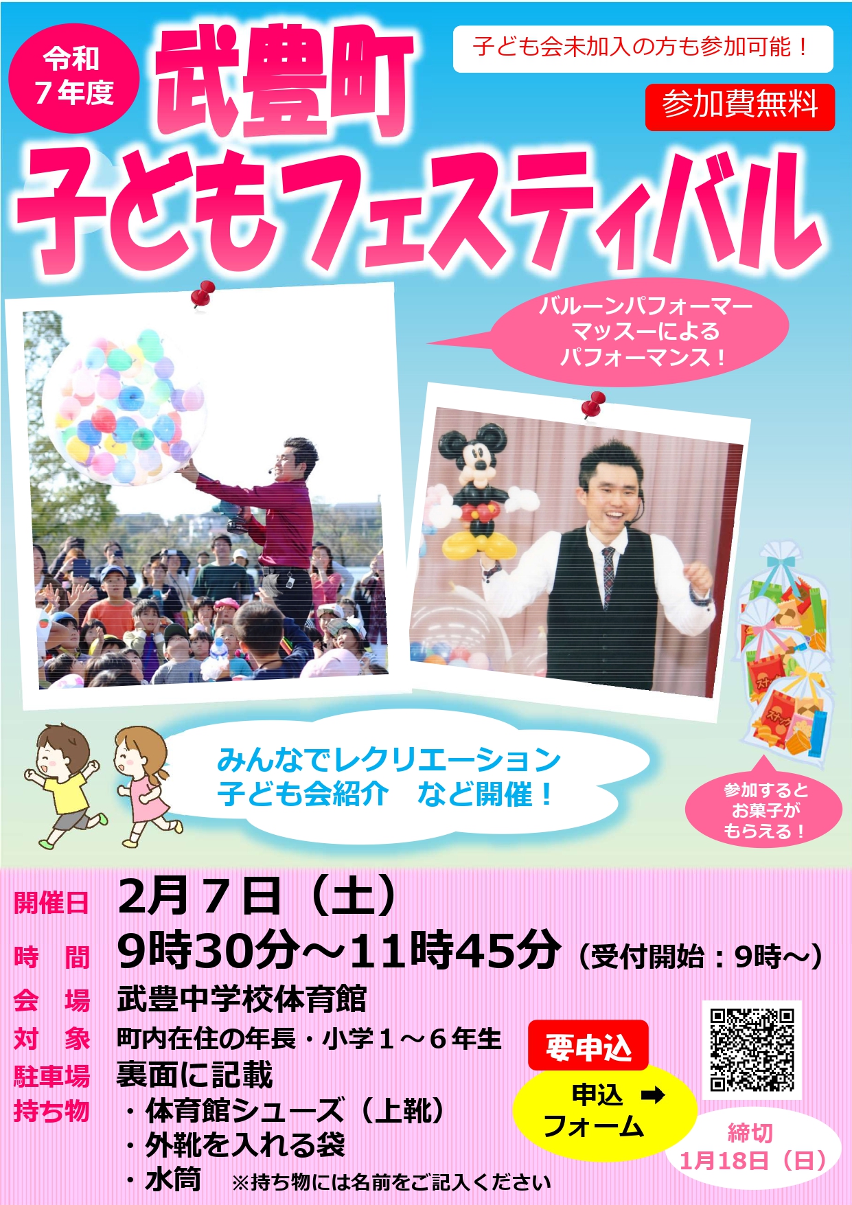 2月7日(土) 武豊中学校体育館にて、「子どもフェスティバル」を開催いたします。